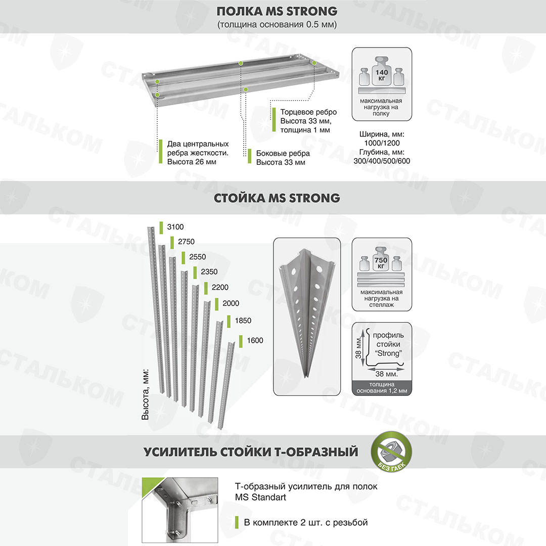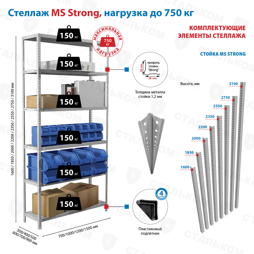 Купить стеллаж MS Strong 2750х1200х400, 6 полок в Салавате с доставкой