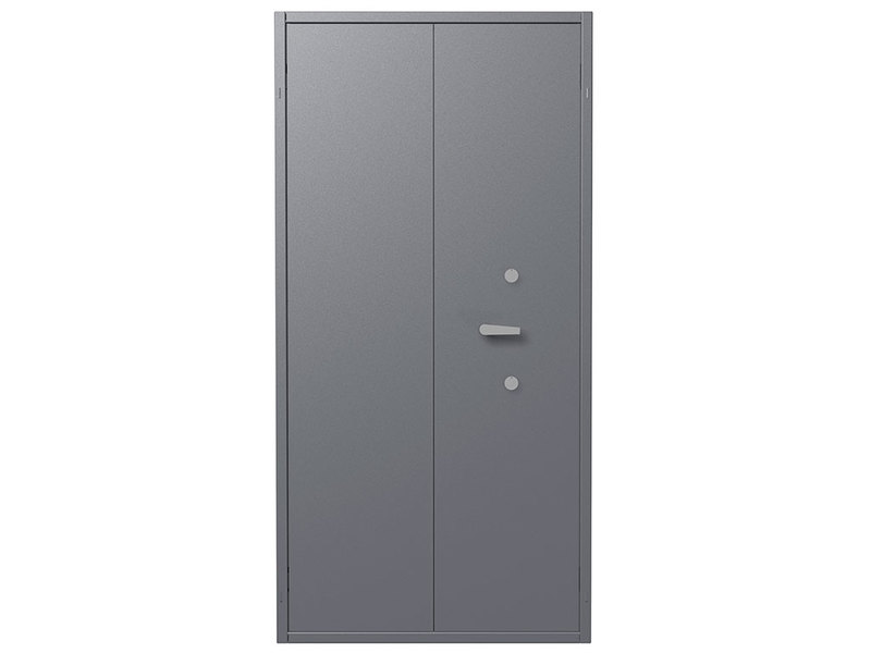 - Комплектуются двумя ключевыми сувальдными замками 2 класса ГОСТ 5089-2011 (по 2 ключа от каждого замка в комплекте) с опечатывающими устройствами на замочную скважину. Поворотная ручка для удобства открывания и закрывания. Левая створка двери оборудована двумя подпружиненными самозапирающимися защелками (вверх и вниз) с приводом от ручки находящейся на внутренней стороне створки двери